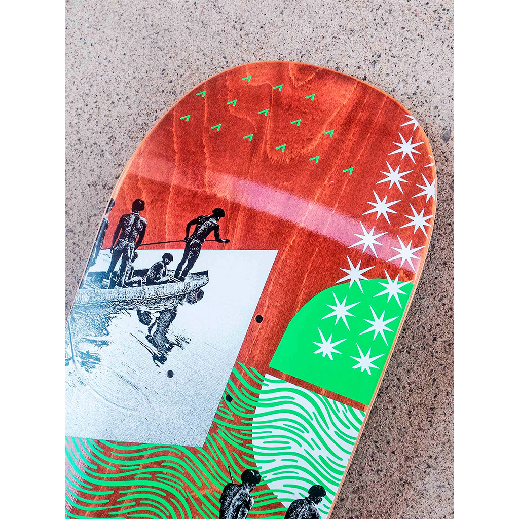 O Shape Maple Future J.N. Progresso 8.25" foi criado a partir de uma foto de José Medeiros, clicada durante uma expedição ao Mato Grosso em 1949. José foi um dos fotógrafos brasileiros mais importantes durante os anos 40 e 50, seu trabalho destacava-se por mostrar classes menos favorecidas da nossa sociedade. O model possui o corte quadrado, com nose e tail mais achatados e o nosso concave muito alto.